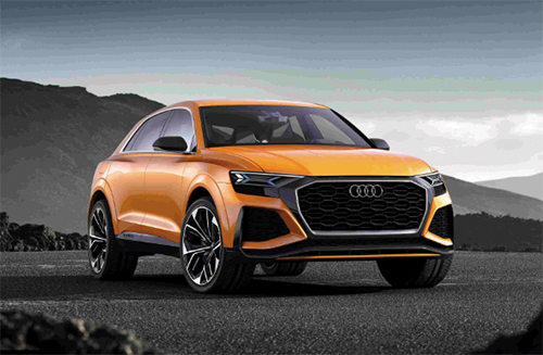 奥迪Q8 Sport的车身前脸采用了奥迪家族式六边形设计,进气格栅和两侧的进气冷道采用正六边形样式,加上梯形样式的LED大灯,使其看上去十分犀利。为了迎合运动型外观,Q8 Sport保持了运动型SUV的一切特征效果。大尺寸的轮毂与隆起的轮眉夺人眼球。溜背造型的车尾加上棱形切割式样的尾灯,令Q8 Sport拥有了极高的识别度,而双边双出的排气布局则凸显了运动风格。